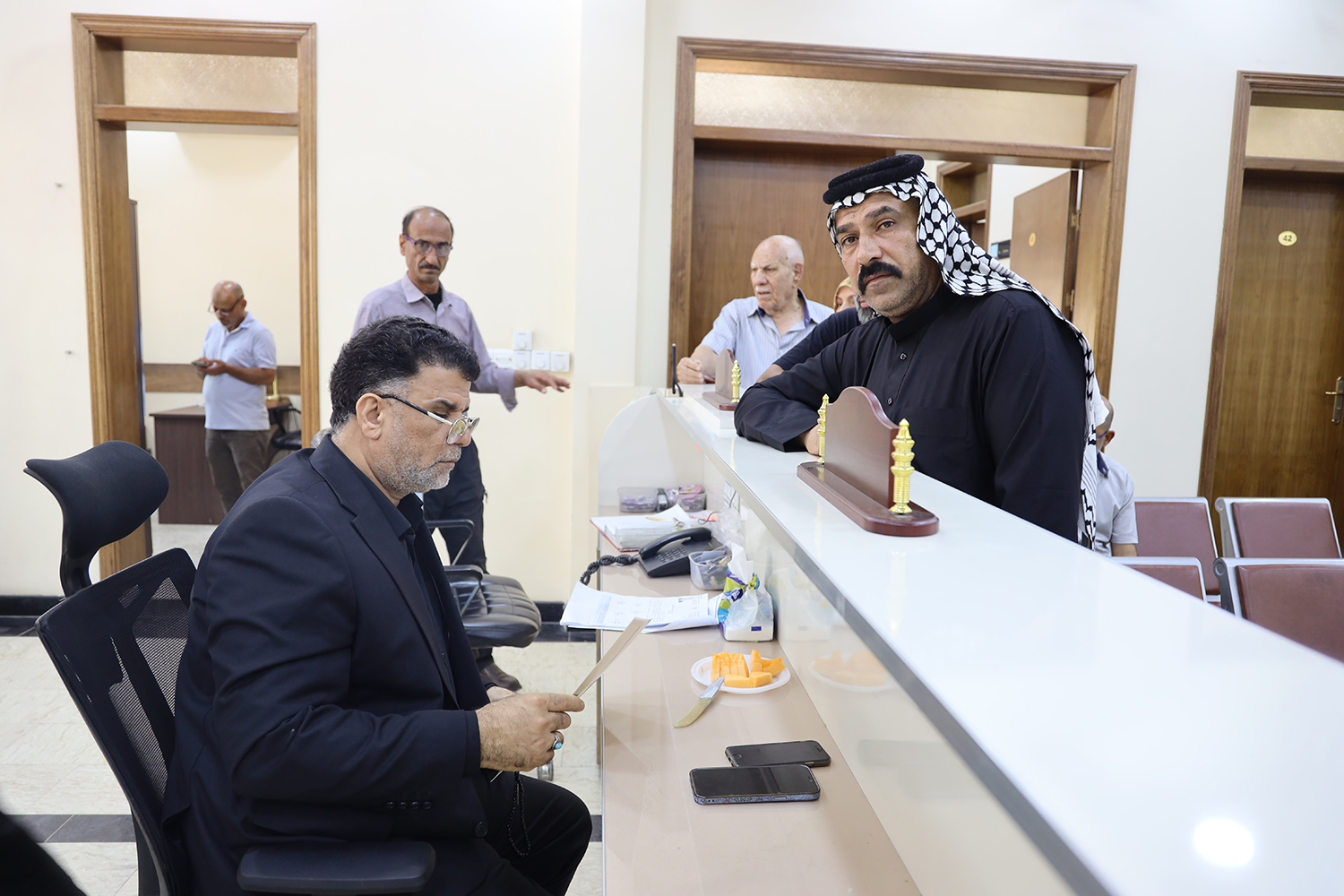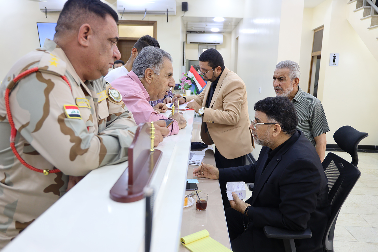 التقى نائب رئيس المؤسسة الأستاذ علي إحمود النوري المراجعين في الأستعلامات اليوم ،الأربعاء، واستمع إلى طلباتهم ونظر في جميع المعاملات المقدمة والإجابة عن جميع الإستفسارات ، فضلا عن تسهيل جميع الإجراءات الخاصة بالمعاملات وبالتعاون المباشر مع موظفي الإستعلامات الذين يعملون بروح التعاون مع أصحاب القرار بإكمال جميع المتعلقات الخاصة بالمراجعين وإرشادهم كل بحسب وجهته .