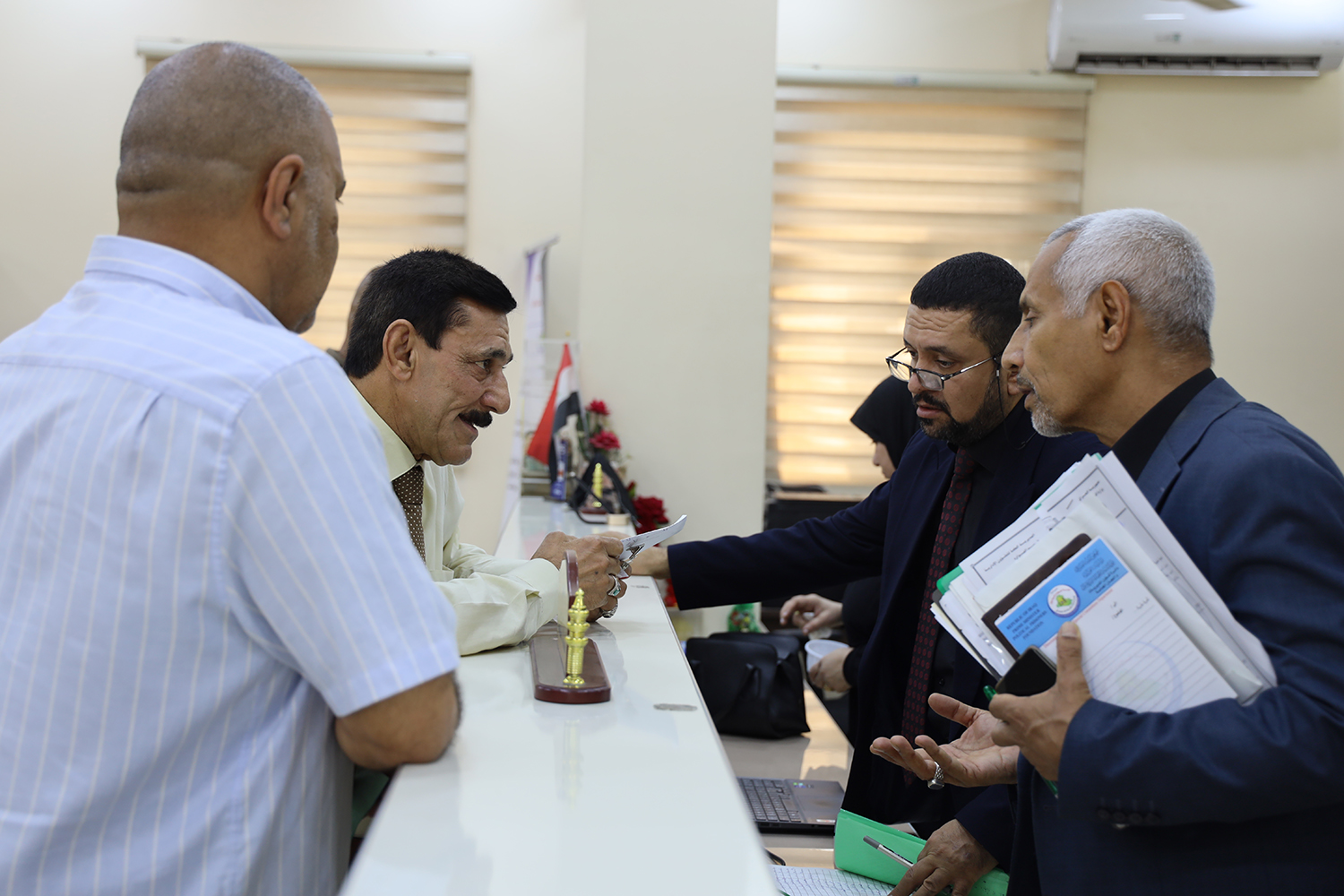 استقبل مدير عام دائرة شؤون المديريات واللجان الخاصة، الأستاذ جبار موات كسار، اليوم الاثنين، المراجعين المشمولين بقانون المؤسسة والراغبين في الانضمام إليه في الاستعلامات.