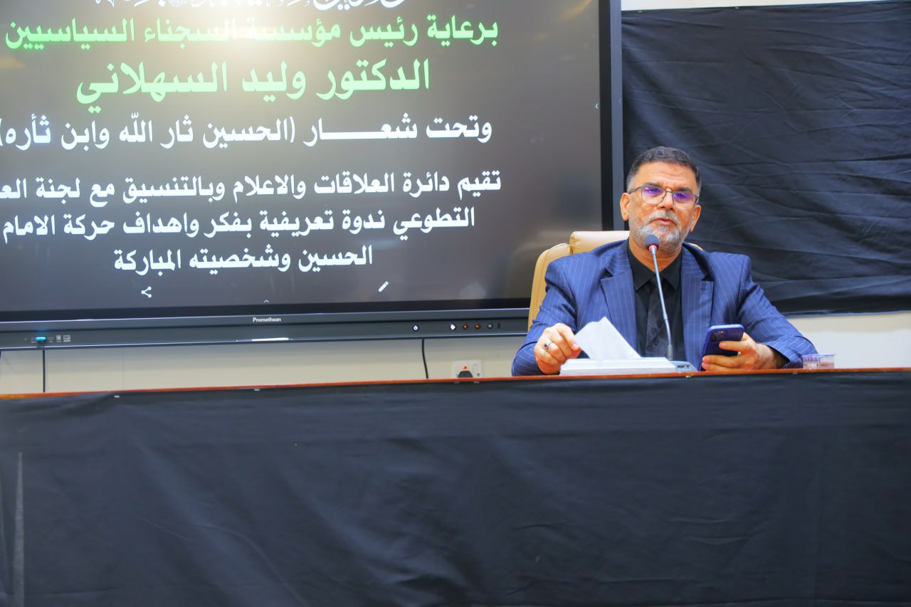 نظّمت دائرة العلاقات والإعلام بالتنسيق مع لجنة العمل التطوعي اليوم الثلاثاء، ندوة تعريفية حول الإمام الحسين (ع) وأهداف حركته المباركة، حاضر فيها نائب رئيس المؤسسة الدكتور علي حمود النوري.
