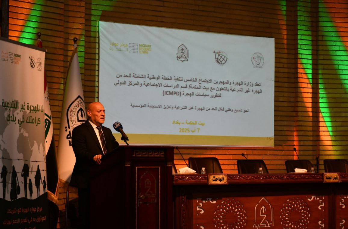 بعد ذلك، قدّم الدكتور كريم النوري، وكيل وزارة الهجرة والمهجرين، كلمة رسمية أوضح فيها رؤية متكاملة لملف الهجرة غير الشرعية وأسبابها، مقدماً الشكر لبيت الحكمة على دعمه، ومؤكداً على ضرورة تضافر الجهود لوضع تصور شامل للحد من هذه الظاهرة.