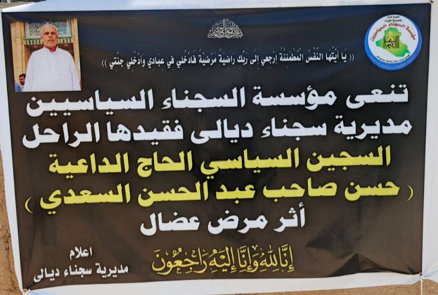 قدّم مدير مديرية سجناء ديالى السيد هاد التميمي والوفد المرافق له، اليوم الاحد، التعازي والمواساة إلى أسرة السجين السياسي الراحل حسن صاحب عبد الحسن السعدي.