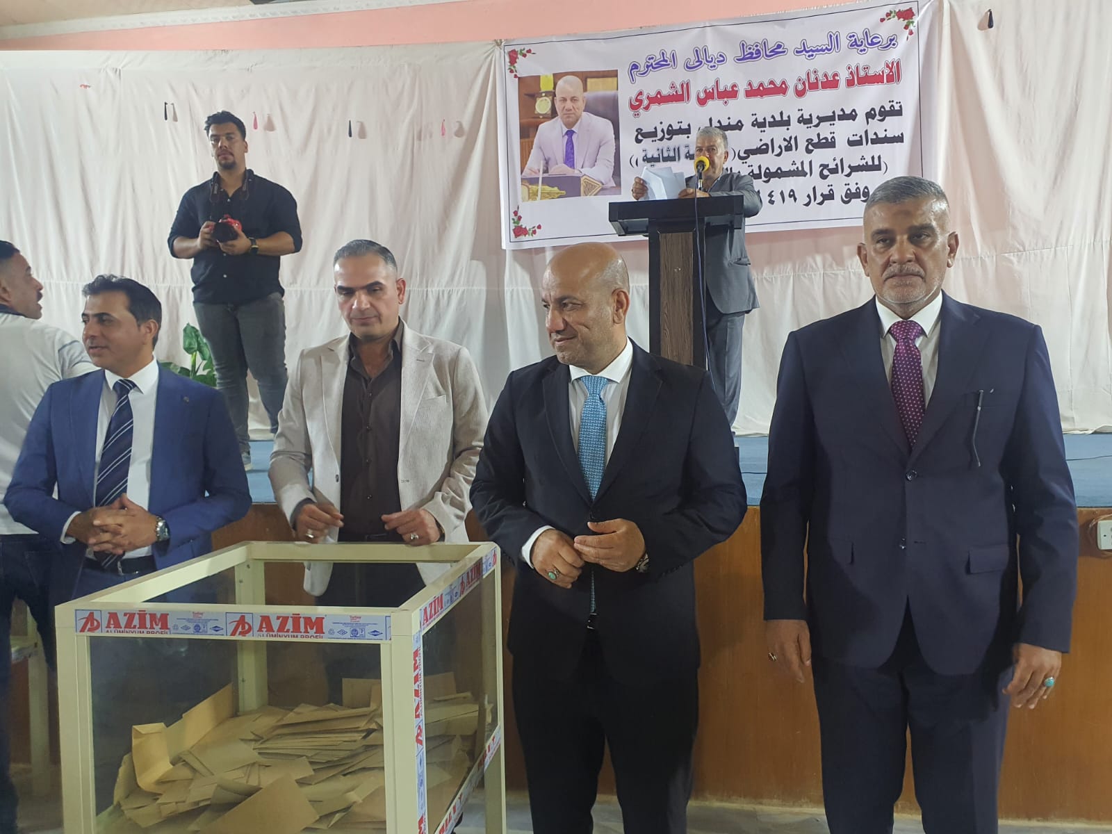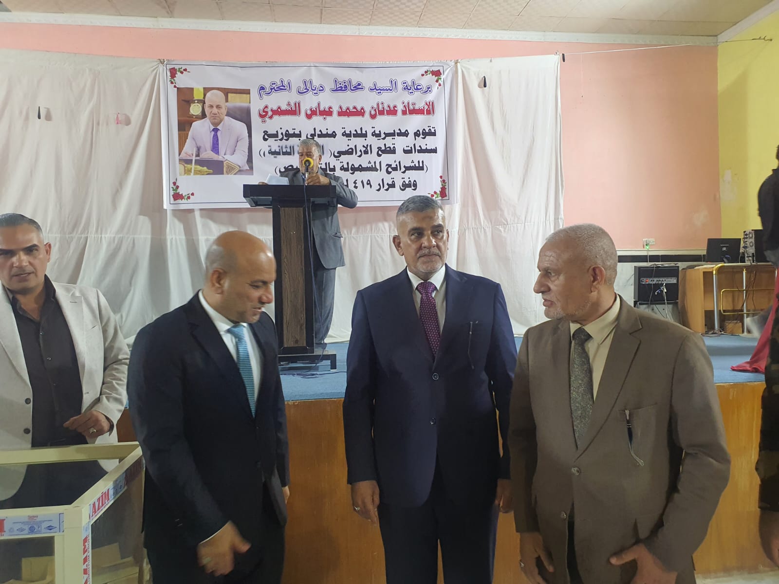 برعاية محافظ ديالى الأستاذ عدنان محمد عباس، وبحضور مدير عام دائرة العلاقات والإعلام والشؤون الثقافية في مؤسسة السجناء السياسيين الأستاذ عدي الخدران ممثلاً عن معالي رئيس المؤسسة الدكتور وليد السهلاني، جرت اليوم مراسم توزيع سندات قطع الأراضي السكنية على المشمولين بأحكام قانون مؤسسة السجناء السياسيين.