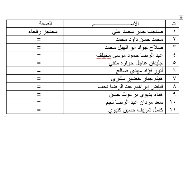 قائمة اسماء / مراجعة اللجنة الخاصة لمحتجزي رفحاء النجف الاشرف 28 يناير، 2026 0 548 Facebook Twitter Google+ Pinterest WhatsApp نظرا لمصادقة رئيس المؤسسة على محاضر توصيات اللجنة العليا لاعادة النظر والخاصة بالسادة المرفقة اسمائهم يرجى مراجعة اللجنة الخاصة لمحتجزي رفحاء النجف الاشرف Post Views: 499