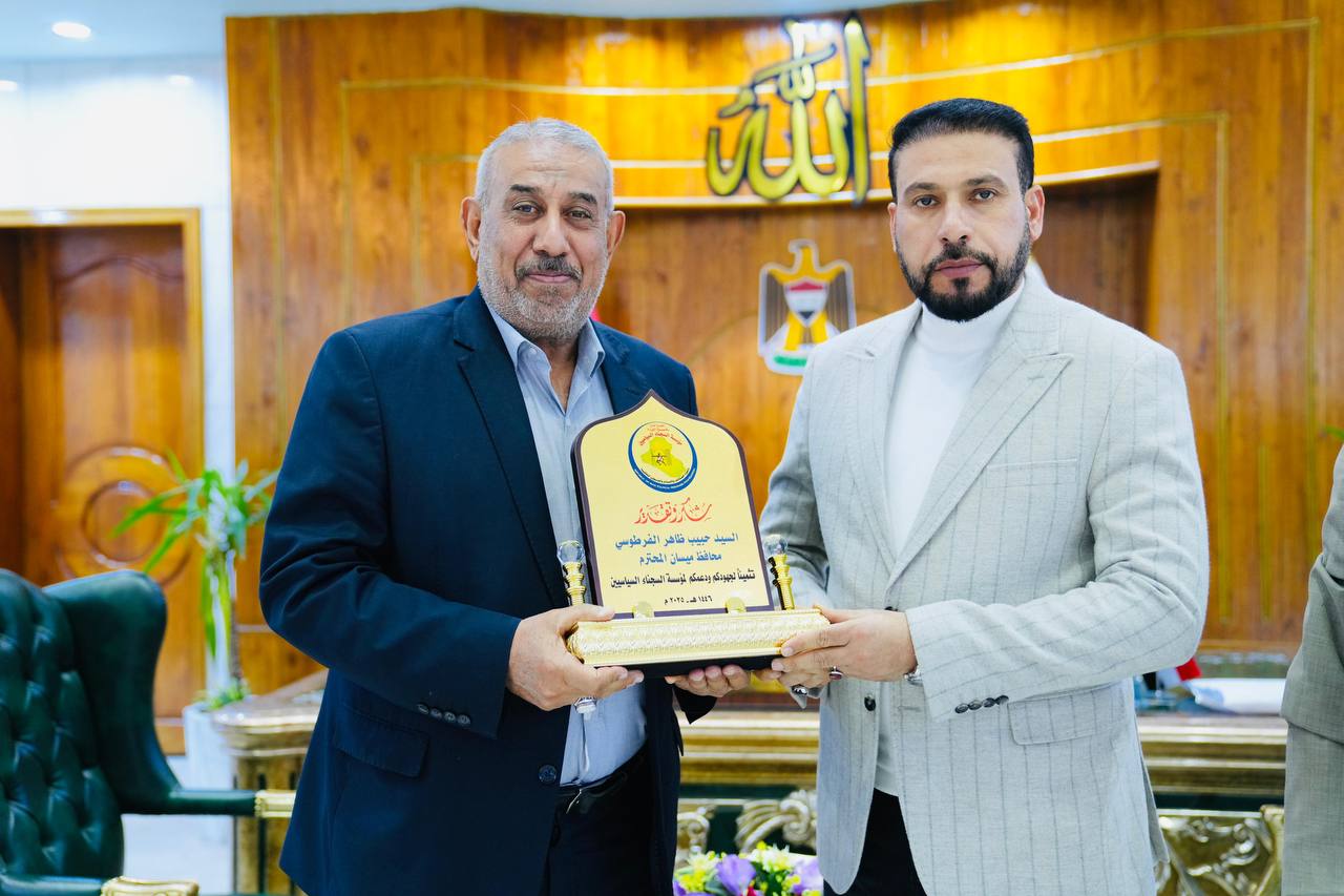 وفي ختام الزيارة، قدّم مدير مديرية سجناء ميسان درع مؤسسة السجناء السياسيين إلى السيد المحافظ، تعبيراً عن شكر وتقدير المديرية خاصةً، والمؤسسة عامةً، لمواقفه الداعمة والسّاندة لهذه الشريحة المظلومة.